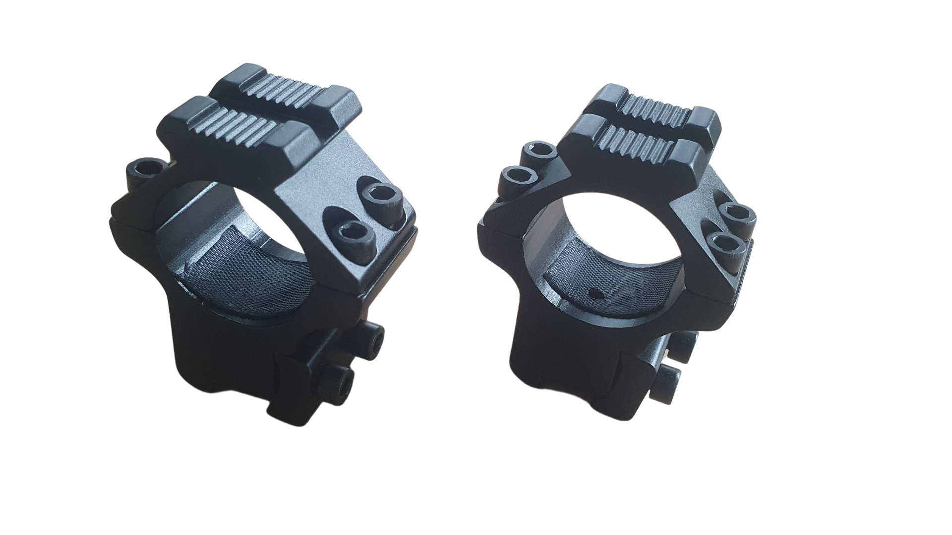 Mit diesen Montageringen lassen sich Zielfernrohre mit einem Durchmesser von ca. 25 mm auf 11 mm Schienen befestigen. Alle Montagearbeiten werden mit einem Inbusschlüssel durchgeführt. An der Oberseite ist zudem eine Picatinnyschiene angebracht. Ein Ring ist mit einem Dorn versehen, um ein Verrutschen an der Schiene zu verhindern.