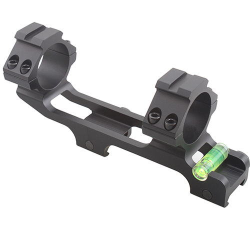 Die Zielfernrohrhalterung ermöglicht die Montage auf Schienen der Systeme Weaver und Picatinny, wie etwa beim AR15. Die Ausführung aus Aluminium macht sie gleichermaßen stabil und leicht. Sowohl die Montage auf der Schiene als auch die Befestigung eines Zielfernrohres sind einfach zu bewerkstelligen. Die Wasserwaage dient als praktische Hilfe beim Einschießen einer Waffe. An der Oberseite der Ringe ist eine Picatinny-Schiene montiert, wodurch Sie noch weiteres Zubehör anbringen können.