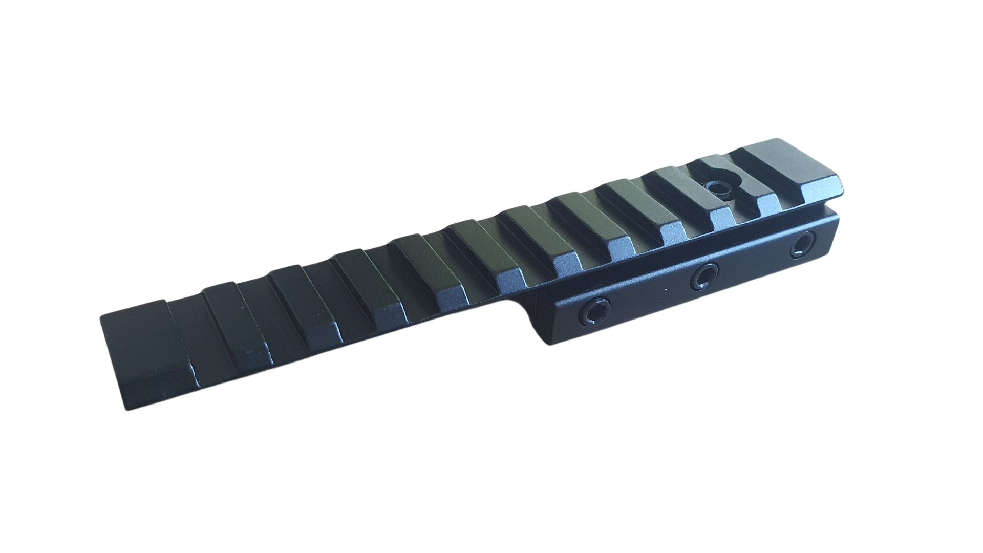 Diese Schiene ermöglicht diverses Equipment an einer 11 mm Schiene anzubringen. Die Weaverschiene mit 11 Nuten bietet mehr Montagemöglichkeiten als die kleinere 11 mm Schiene. Sie wird einfach auf die 11 mm Schiene aufgesetzt und durch vier Sechskantschrauben befestigt. Die Feststellschraube verhindert ein Verrutschen.