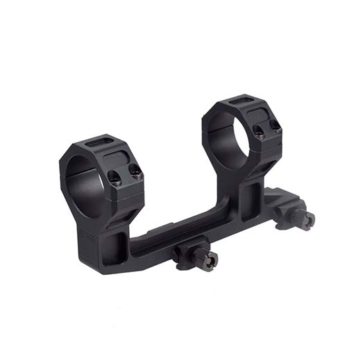 Die Zielfernrohrhalterung ermöglicht die Montage auf Schienen der Systeme Weaver und Picatinny, wie etwa beim AR15. Die Ausführung aus Aluminium macht sie zugleich stabil und leicht. Sowohl die Montage auf der Schiene als auch eines Zielfernrohres sind einfach zu bewerkstelligen.