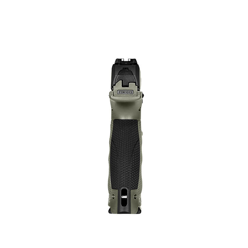 Die WALTHER PDP 5" ist das Flaggschiff-Modell des Ulmer Pistolenspezialisten und eine Pistole der modernsten Generation. Die Waffe überzeugt vor allem durch ihre hervorragende Ergonomie und die Modularität ab Werk. So lässt sich etwa der Griffrücken wechseln, um immer ideal an die Handgröße des Schützen angepasst zu sein. Daneben sind alle Bedienelemente auf beiden Seiten verbaut bzw. lassen sich schnell und einfach umsetzen. Unter dem Lauf befindet sich eine Picatinny-Schiene zur schnellen und einfachen Montage von Lichtern und Laser. Auf der Oberseite des Schlittens ist eine Schnittstelle für Rotpunktvisiere integriert. Die zusätzlichen Laderillen am vorderen Ende des Schlittens sorgen für eine noch sicherere Handhabung und maximale Kontrolle in jeder Lage. Diese Ausführung kommt mit dem 5" Full Size Rahmen, sowie mit einem Griffstück, das in einem lässigen Olivgrün gehalten ist. Im Lieferumfang sind zwei Magazine, eine Ladehilfe, und drei Griffrücken enthalten.