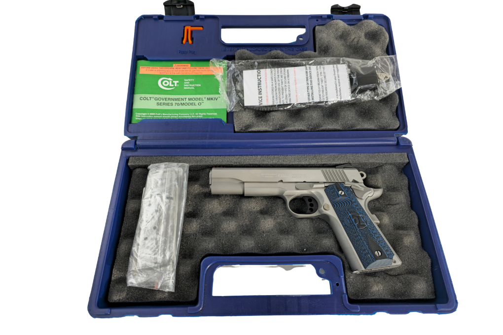 Die COLT Mod. 1911 Competition Silver ist eine erstklassige Wahl für ambitionierte Sportschützen. Basierend auf dem legendären Government-Modell überzeugt sie durch ihre hochwertige Verarbeitung, absolute Funktionssicherheit und sportliche Präzision. Der Schlitten aus rostträgem Edelstahl ist gebürstet und verleiht der Waffe nicht nur eine edle Optik, sondern auch maximale Robustheit. Die einstellbare Novak-Fiberoptik-Visierung ermöglicht schnelle Zielerfassung bei jeder Lichtsituation. Die ergonomischen G10-Griffschalen mit rutschfester Struktur sorgen für einen sicheren Halt auch bei dynamischem Schießen. Geliefert wird die Pistole im originalen COLT-Kunststoffkoffer inklusive Zubehör. Der Zustand der gebrauchten Waffe ist neuwertig!