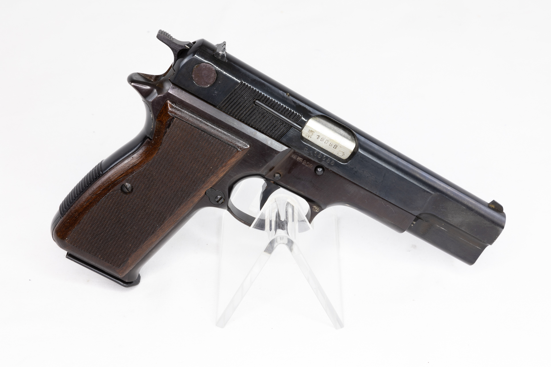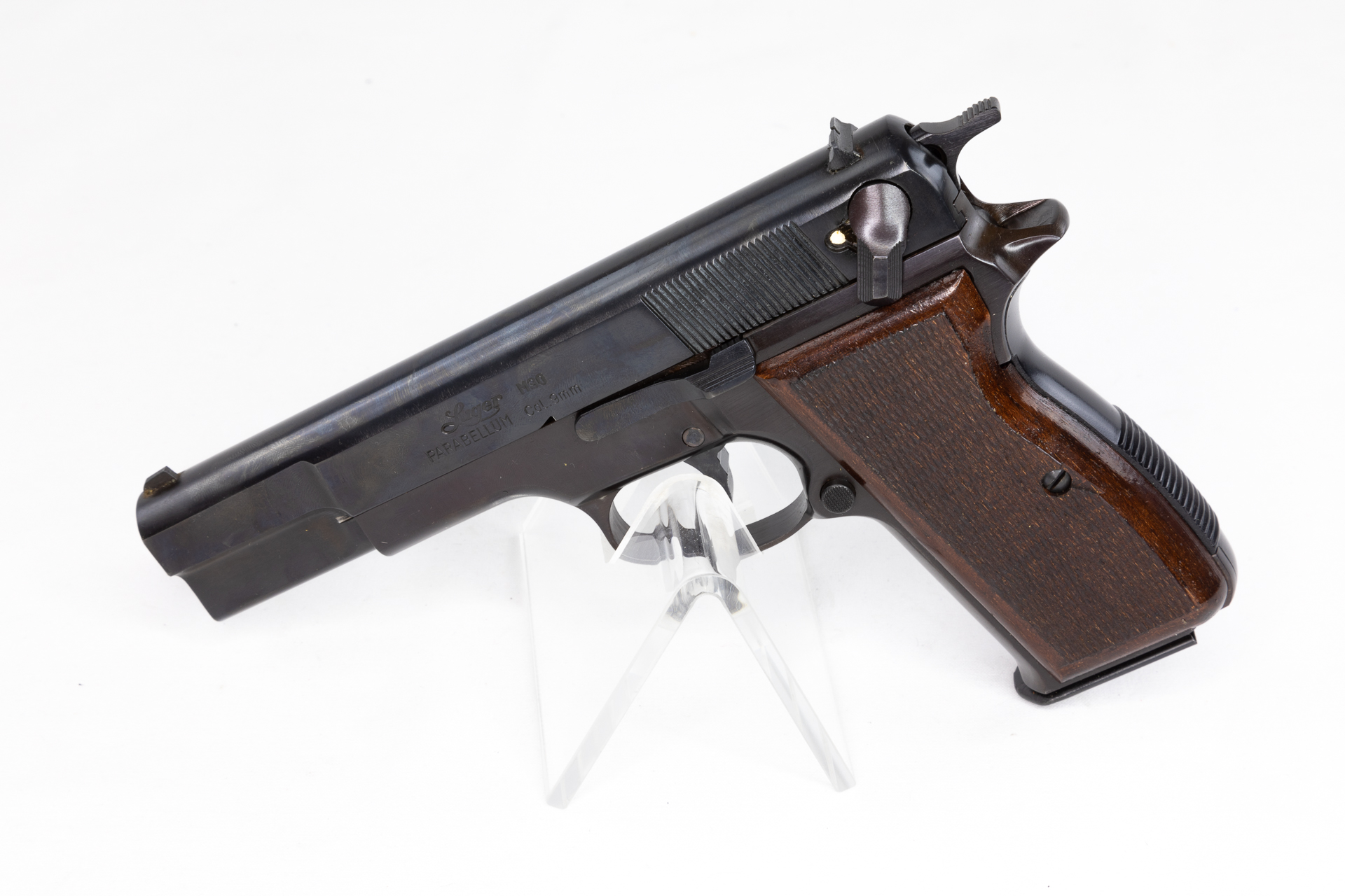 Gebrauchte, brünierte Ganzstahlpistole mit klassischem Design und solider Verarbeitung. Ausgestattet mit SA/DA-Abzug, Drehsicherung mit Entspannfunktion und edlen Holzgriffschalen mit Fischhautstruktur.