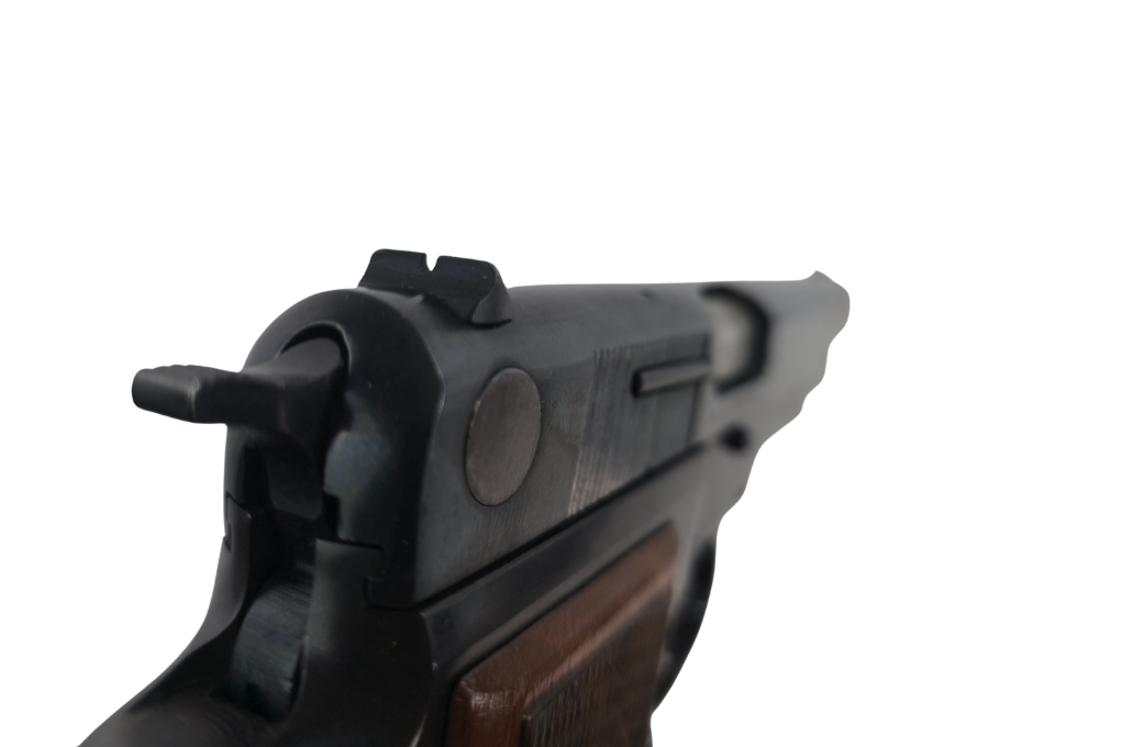 Die gebrauchte Luger/Mauser Pistole Modell M90 überzeugt durch ihr klassisches Design, den ergonomischen Holzgriff und eine solide Verarbeitungsqualität. Ideal für Sammler oder Sportschützen, die Wert auf Historie und Funktionalität legen.