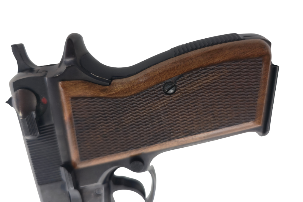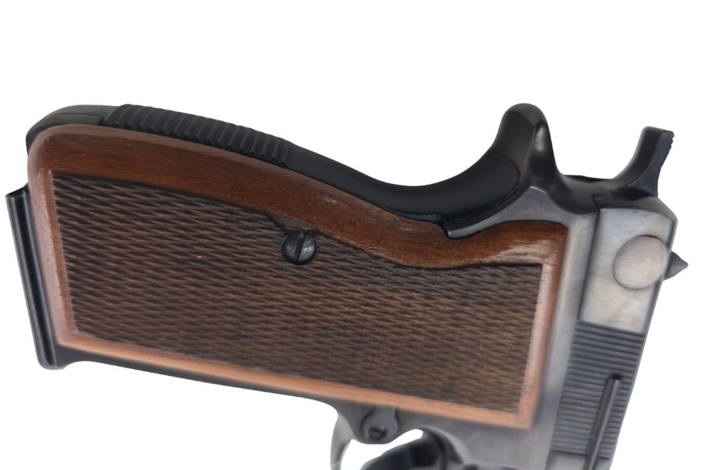 • ergonomisch geformte Holzgriffschalen