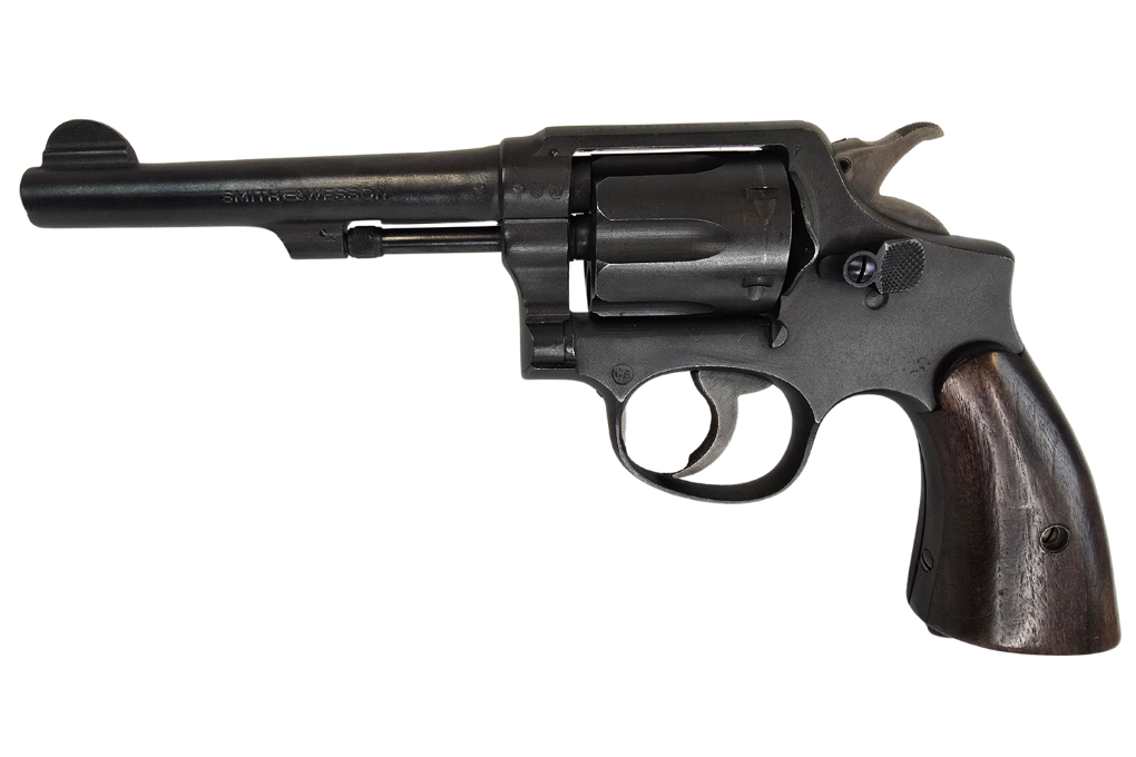 Klassischer Dienstrevolver mit geschichtlichem Hintergrund: Der Smith & Wesson Victory ist eine seltene Variante des Modells 10 und war vor allem während des Zweiten Weltkriegs im Einsatz. Diese gut erhaltene Gebrauchtwaffe überzeugt mit robuster Bauweise und militärischer Historie.